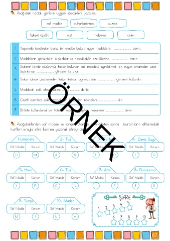 5- Hava 6- Tuz 7- Altın 8- Dondurma