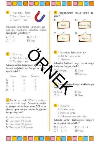 6 1. Nikel tozu - Talaş 9 Aşağıdakilerden hangisi karışım de-