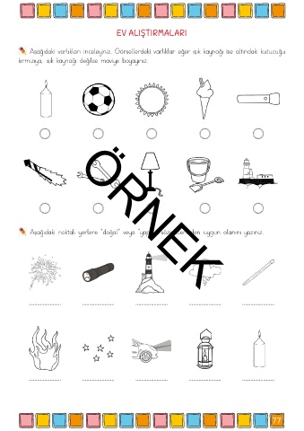 Aşağıdaki varlıkları inceleyiniz. Görsellerdeki varlıklar eğer ışık kaynağı ise altındaki kutucuğu