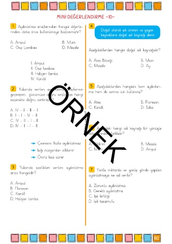 D. IV - II - I - III pekşen yayınları 6 Aşağıdaki hangi ışık kaynağı bir yönüyle