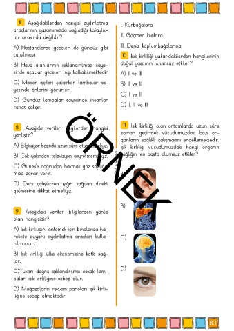 8 Aşağıda verilen bilgilerden hangisi 11 Işık kirliliği olan ortamlarda uzun süre