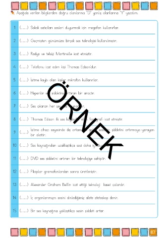 8 (........) Thomas Edison ilk ses kaydedici olan fonografı icat etmiştir.