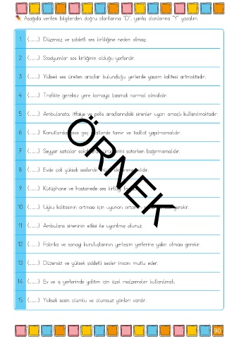 9 (........) Kütüphane ve hastanede ses kirliliği fazladır.