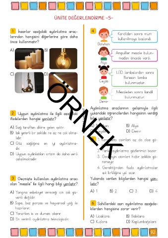 3 Geçmişte kullanılan aydınlatma aracı Yukarıda verilen bilgilerden hangisi yan-