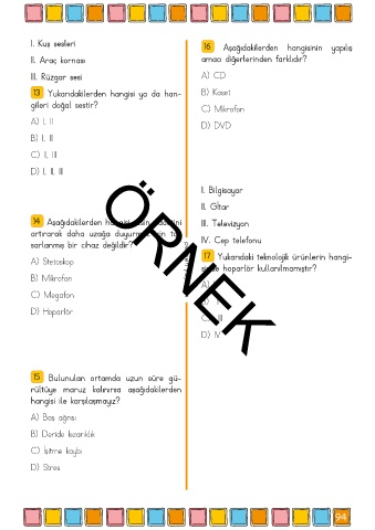 I. Kuş sesleri 16 Aşağıdakilerden hangisinin yapılış
