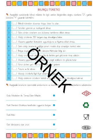 Aşağıdaki cümlelerde bilinçli tüketici ile ilgili verilen bilgilerden doğru olanlara “D”, yanlış