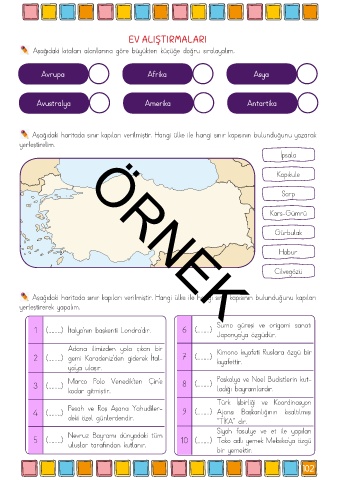 Aşağıdaki kıtaları alanlarına göre büyükten küçüğe doğru sıralayalım.