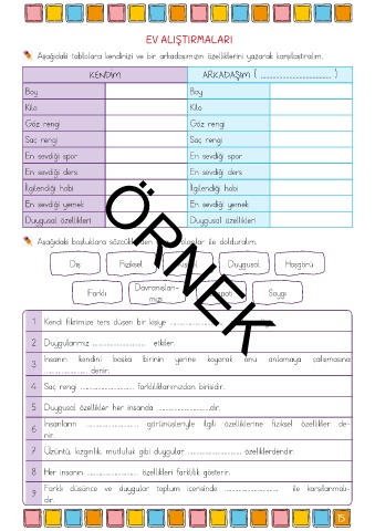 Aşağıdaki tablolara kendinizi ve bir arkadaşımızın özelliklerini yazarak karşılaştıralım.