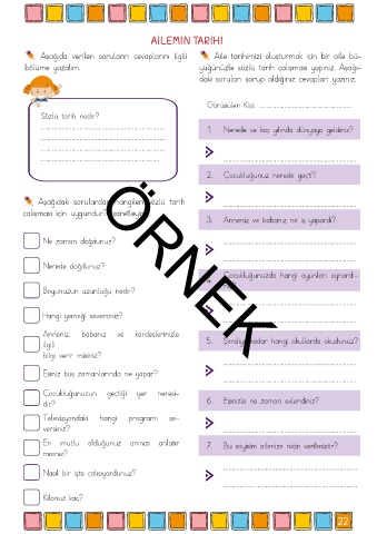 Aşağıda verilen soruların cevaplarını ilgili Aile tarihimizi oluşturmak için bir aile bü-
