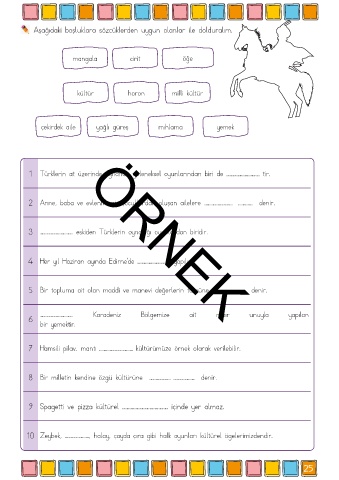 8 Bir milletin kendine özgü kültürüne ……………………… ……………………… denir.