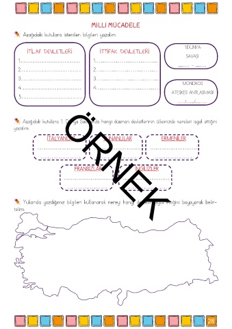 Yukarıda yazdığımız bilgileri kullanarak nereyi hangi devletin işgal ettiğini boyayarak belir-