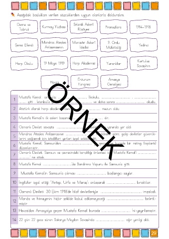 13 Havza’dan Amasya’ya geçen Mustafa Kemal burada ........................................ ’ni yayınlamıştır.