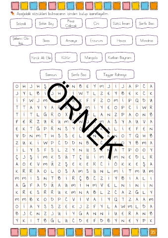 Aşağıdaki sözcükleri bulmacanın içinden bulup işaretleyelim.