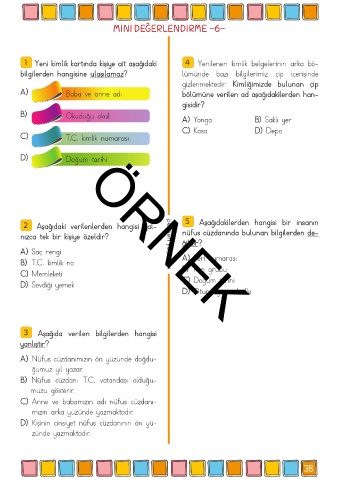 A) Nüfus cüzdanımızın ön yüzünde doğdu-