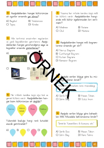 8 Aşağıdakilerden hangisi kültürümüze 11 Yaşamış her milletin kendine özgü milli