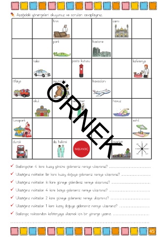 Başlangıçtan 4 kare kuzey yönüne giderseniz nereye ulaşırsınız? ...........................................................