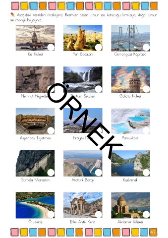 Aşağıdaki resimleri inceleyiniz. Resimler beşeri unsur ise kutucuğu kırmızıya, doğal unsur