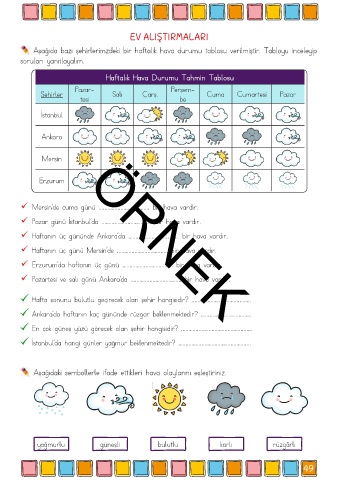 Aşağıda bazı şehirlerimzdeki bir haftalık hava durumu tablosu verilmiştir. Tabloyu inceleyip