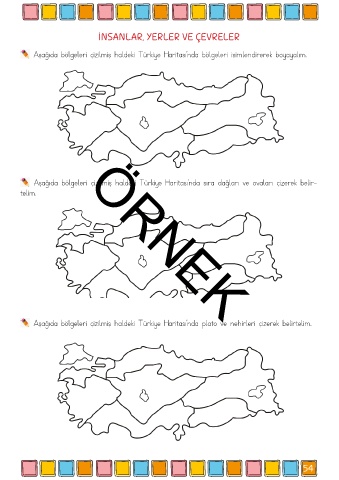 Aşağıda bölgeleri çizilmiş haldeki Türkiye Haritası’nda bölgeleri isimlendirerek boyayalım.