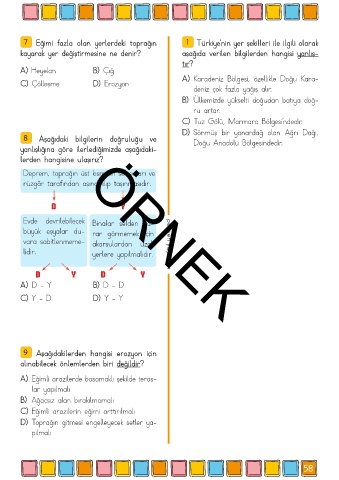7 Eğimi fazla olan yerlerdeki toprağın 1 Türkiye’nin yer şekilleri ile ilgili olarak