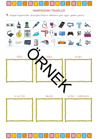HAYATIMIZDAKİ TEKNOLOJİ Aşağıda hayatımızdaki teknolojileri kullanım alanlarına göre uygun yerlere yazalım. SAĞLIK ULAŞIM EĞİTİM ÖRNEK EV ALETLERİ EĞLENCE İLETİŞİM - HABERLEŞME 61