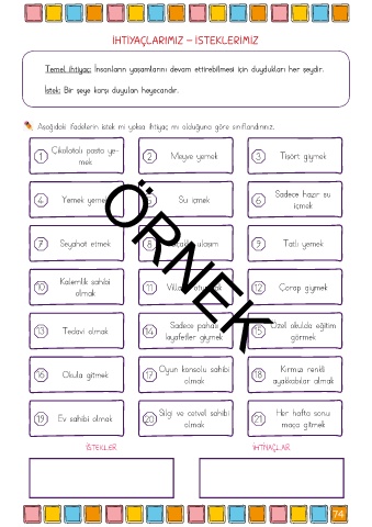 Aşağıdaki ifadelerin istek mi yoksa ihtiyaç mı olduğuna göre sınıflandırınız.