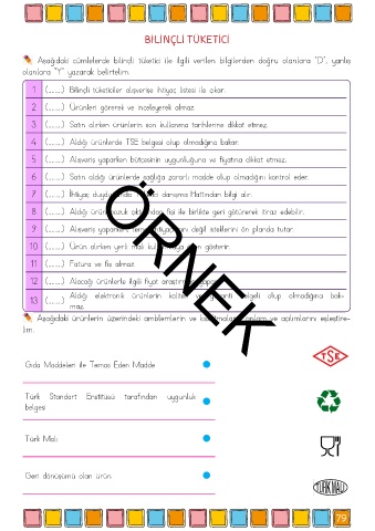 Aşağıdaki cümlelerde bilinçli tüketici ile ilgili verilen bilgilerden doğru olanlara “D”, yanlış