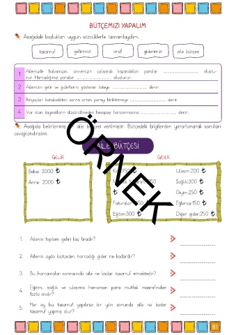 1 Ailemizde babamızın, annemizin çalışarak kazandıkları paralar ...................................... oluştu-