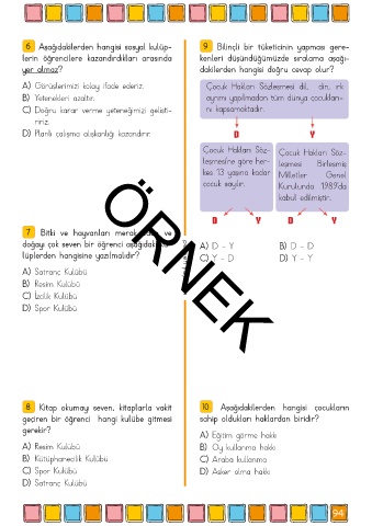 8 Kitap okumayı seven, kitaplarla vakit 10 Aşağıdakilerden hangisi çocukların