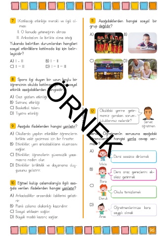 A) Okullarda yapılan etkinlikler öğrencilerin Servet Öğretmen’in sorusuna aşağıdaki