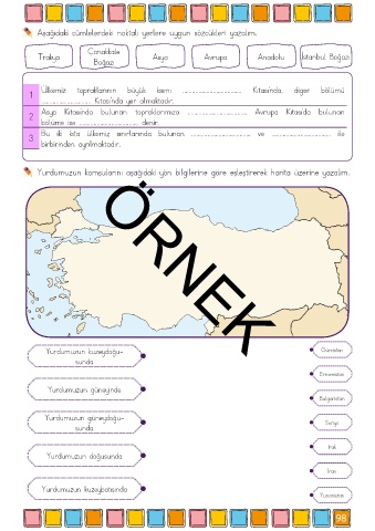 Yurdumuzun komşularını aşağıdaki yön bilgilerine göre eşleştirerek harita üzerine yazalım.
