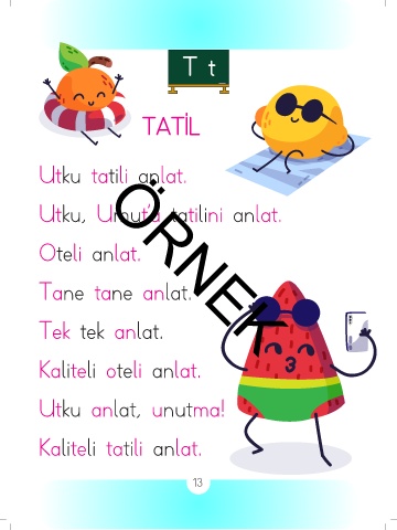 T t TATİL Utku tatili anlat. Utku, Umut’a tatilini anlat. Oteli anlat. Tane tane anlat. ÖRNEK Tek tek anlat. Kaliteli oteli anlat. Utku anlat, unutma! Kaliteli tatili anlat. 13