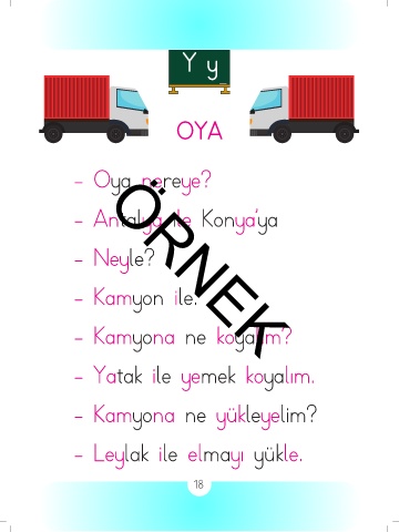 Y y OYA - Oya nereye? - Antalya ile Konya’ya - Neyle? - Kamyon ile. ÖRNEK - Kamyona ne koyalım? - Yatak ile yemek koyalım. - Kamyona ne yükleyelim? - Leylak ile elmayı yükle. 18