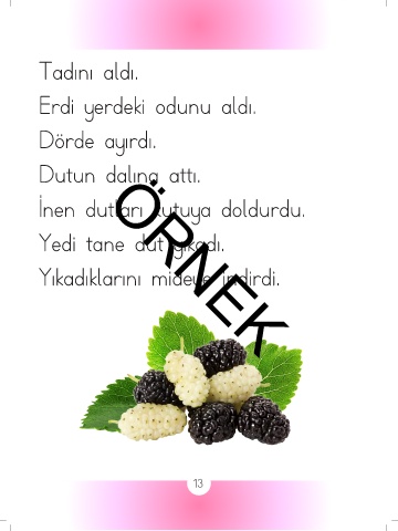 Tadını aldı. Erdi yerdeki odunu aldı. Dörde ayırdı. Dutun dalına attı. İnen dutları kutuya doldurdu. Yedi tane dut yıkadı. Yıkadıklarını mideye indirdi. ÖRNEK 13