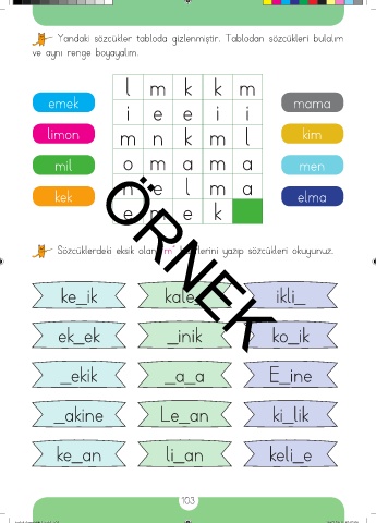 Sözcüklerdeki eksik olan “m” harflerini yazıp sözcükleri okuyunuz.