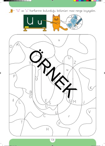 “U” ve “u” harflerinin bulunduğu bölümleri mavi renge boyayalım. U u s u u t ÖRNEK f r 108 taslak dosyabitti3.indd 108 29.07.2019 02:02:34