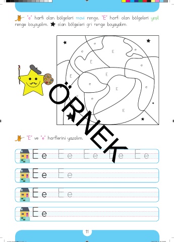 “e” harfi olan bölgeleri mavi renge, “E” harfi olan bölgeleri yeşil renge boyayalım. olan bölgeleri gri renge boyayalım. “E” ve “e” harflerini yazalım. ÖRNEK E e E e E e E e E e E e E e E e E e E e 11 taslak dosyabitti3.indd 11 29.07.2019 01:55:08