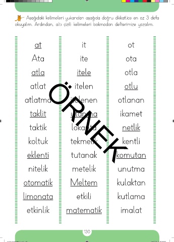 Aşağıdaki kelimeleri yukarıdan aşağıda doğru dikkatlice en az 3 defa