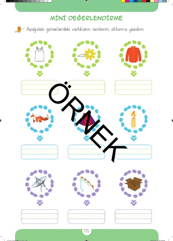 MİNİ DEĞERLENDİRME Aşağıdaki görsellerdeki varlıkların isimlerini altlarına yazalım. ÖRNEK 135 taslak dosyabitti3.indd 135 29.07.2019 02:04:59