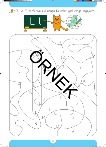 “L” ve “l” harflerinin bulunduğu bölümleri yeşil renge boyayalım. L l Ş r p ÖRNEK l Ş Y l f ü A 14 taslak dosyabitti3.indd 14 29.07.2019 01:55:22