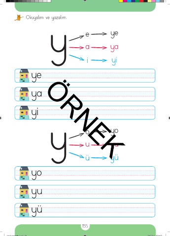 y e ye Okuyalım ve yazalım. a ya i yi ye ya yi ÖRNEK y u yu yo o ü yü yo yu yü 155 taslak dosyabitti3.indd 155 29.07.2019 02:06:27