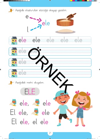 Aşağıda oluşturulan sözcüğü okuyup yazalım. e ele l ele ele ele ele ele ele ele ele ele ÖRNEK Aşağıdaki metni okuyalım. ELE ele, ele UN UN El ele, UN ele El ele, el ele 21 taslak dosyabitti3.indd 21 29.07.2019 01:55:53