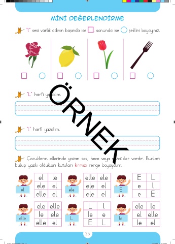 “l” sesi varlık adının başında ise , sonunda ise şeklini boyayınız.