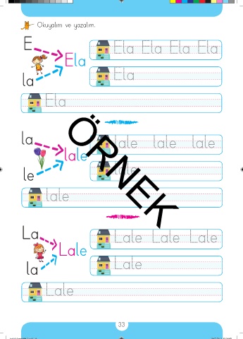 Okuyalım ve yazalım. E Ela Ela Ela Ela Ela la Ela Ela la lale lale lale lale lale le ÖRNEK lale La Lale Lale Lale Lale la Lale Lale 33 taslak dosyabitti3.indd 33 29.07.2019 01:56:48
