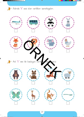 Adında “k” sesi olan varlıkları işaretleyelim. Adı “k” sesi ile başlayan varlıkları işaretleyiniz. ÖRNEK 39 taslak dosyabitti3.indd 39 29.07.2019 01:57:20