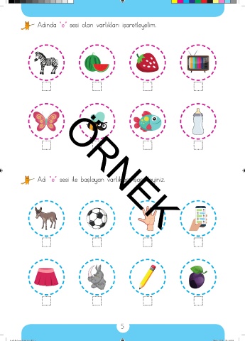 Adında “e” sesi olan varlıkları işaretleyelim. Adı “e” sesi ile başlayan varlıkları işaretleyiniz. ÖRNEK 5 taslak dosyabitti3.indd 5 29.07.2019 01:54:39