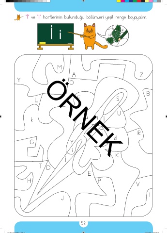 “İ” ve “i” harflerinin bulunduğu bölümleri yeşil renge boyayalım. İ i İ i i u i k ÖRNEK İ i d i İ 52 taslak dosyabitti3.indd 52 29.07.2019 01:58:28