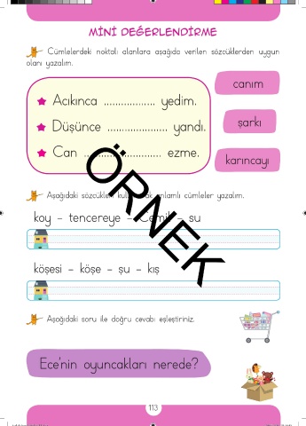 Aşağıdaki sözcükleri kullanarak anlamlı cümleler yazalım.