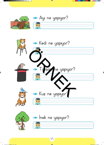 Ayı ne yapıyor? Kedi ne yapıyor? Tavşan ne yapıyor? ÖRNEK Kuş ne yapıyor? İnek ne yapıyor? 175 taslak dosyabitti4.indd 175 29.07.2019 01:41:42