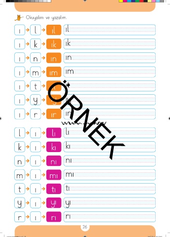 Okuyalım ve yazalım. ı l ıl ıl ı k ık ık ı n ın ın ı m ım ım ı t ıt ıt ı y ıy ıy ır ır ı r ÖRNEK l ı lı lı k ı kı kı n ı nı nı m ı mı mı t ı tı tı y ı yı yı r ı rı rı 26 taslak dosyabitti4.indd 26 29.07.2019 01:23:53